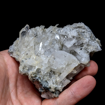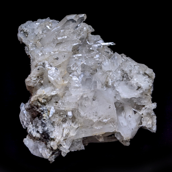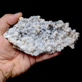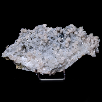 Présence de deux générations de Quartz : la première est blanche, puis est recouverte par la seconde qui est translucide et fumée. Nous voyons clairement que le cœur des cristaux est opaque blanc par transparence avec la couche fumée qui le laisse apparaître.15,10 x 11 x 7,40 cmRéférence : 1656