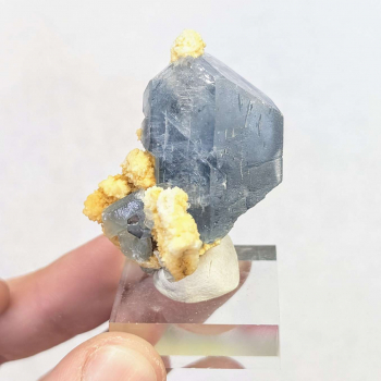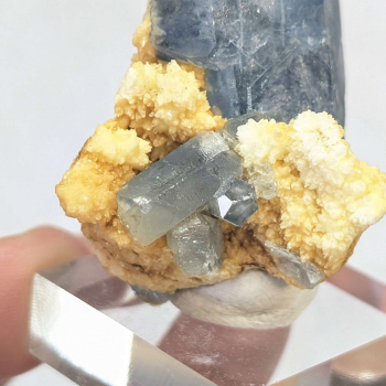 89 x 70 x 43 mm LCJD-0526 Deuxième génération de baryte jaune sur une première de baryte bleue.