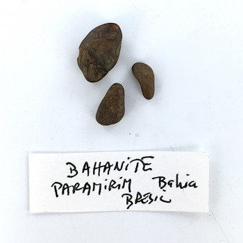 Bahianite, Paramirim, Bahia, Brésil. Rare oxyde d’antimoine et aluminium, galets de rivière, échange Jacques Cassedanne. Lot de 3 spécimens. Référence : 0066