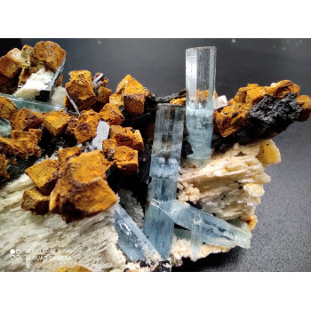 AIGUE MARINE, TOURMALINE, SIDERITE, ORTHOSE - ERONGO, NAMIBIE