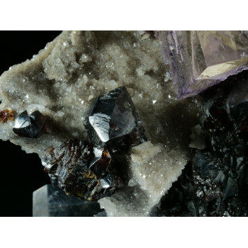 Joli Quartz niché dans une septaria type pudding. Celui-ci repose sur une belle Calcite noire et Ankérite, le tout donnant du contraste à la pièce.6,8 x 4 x 5,5 cmRéférence : 0727