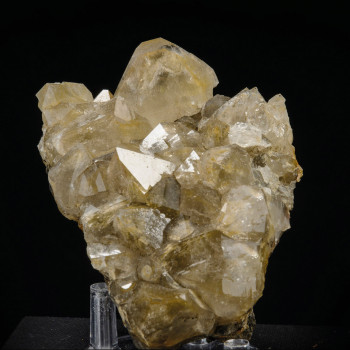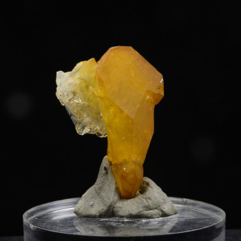 Cristaux de calcite jaune sur quartz à fantômes chloriteux.3 x 1,8 x 1,8 cmRéférence : 0361