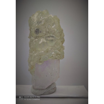 Cristal de quartz avec zonages améthyste et association de Prehnite6,8 x 2,5 cm0050-MDSA