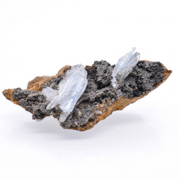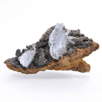 Cristaux de pyrite partiellement recouverts d'hématite.Ce spécimen flottant provient de l'île d'Elbe, Toscane, Italie.Cette pyrite pèse 142 grammes.4,5 x 4 x 3,7 cmRéférence : 0173