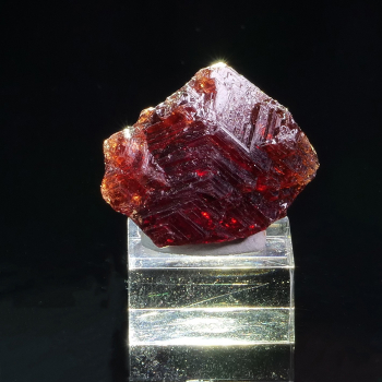 Cristaux de Spinelle rouge rubis, gemmes et brillants, qui font contraste avec leur gangue de Calcite blanche. Cristal principal : 1,10 x 1 x 0,95 cm.4,50 x 2,40 x 1,10 cmRéférence : 1410