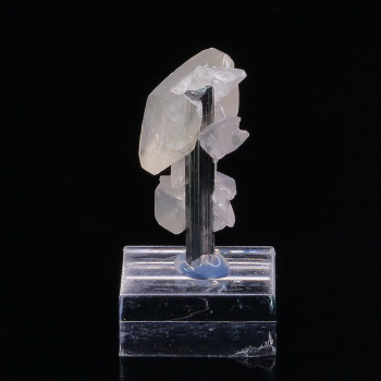 belle association, cristaux d'aigue marine transparents associés à de l'orthose et de la tourmaline noire 10 X 7,7 x 7 cm 0373-MDSA