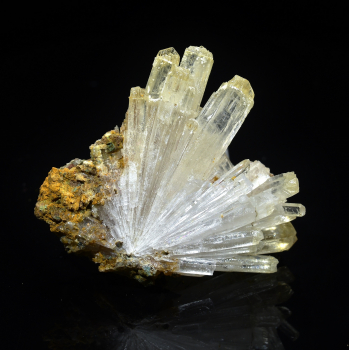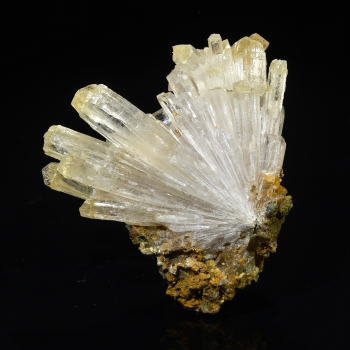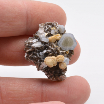 Très beau spécimen de cristaux de Ferro-Actinolite associés à des cristaux de Cleavelandite qui offre un bel ensemble. Pièce aérienne et esthétique.5,14 x 3,25 x 2,75 cmRéférence : 0382