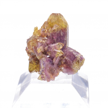 Rare fluorine sur quartz provenant de Clersanges, Haute Loire, France.7,2 x 4,8 cm.Référence : 0162-RuFo