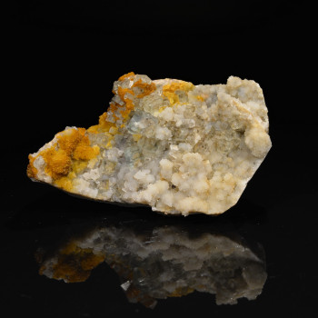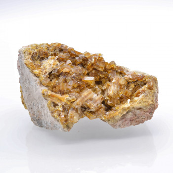 Spécimen peu commun de Cassitérite associé à des cristaux de Quartz sur gangue. Belle cristallisation, les cristaux de Cassitérite présentent une belle couleur noire aux reflets dorés et rouges.13 x 12,20 x 9,60 cmRéférence : 0518