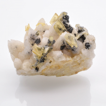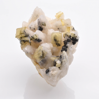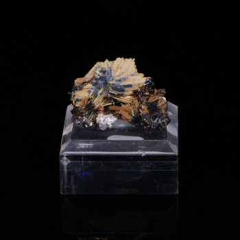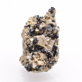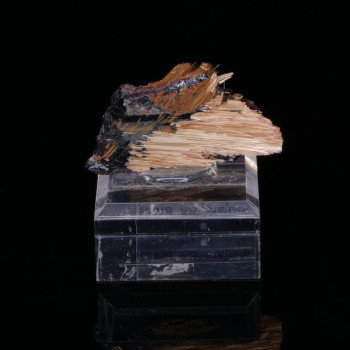Belle pièce d'axinite californienne, cristallisée sur les deux faces, avec en association des cristaux d'albite transparente et des fibres vertes d'actinolite.Cet échantillon avec une bonne présentation provient de New Melones Dam, Calaveras Co., Californie, États-Unis.D'un poids de 91 grammes,...
