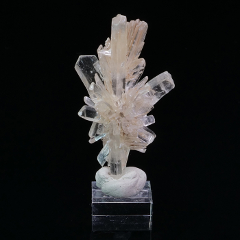 Superbes groupes d’Opale Hyalite associés à des cristaux d’Aragonite botryoïdaux. Cristaux complètement transparents, limpides, sur leur gangue d’Andésite. Très forte réaction aux UV pour cette variété d’Opale.6 x 4,20 x 4,45 cmRéférence : 0693