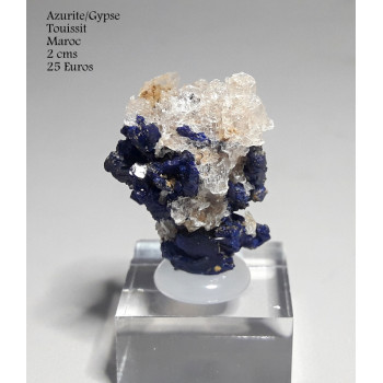 Azurite et gypse de Touissit, Maroc, dimensions hors socle2 cm0043-LCPF