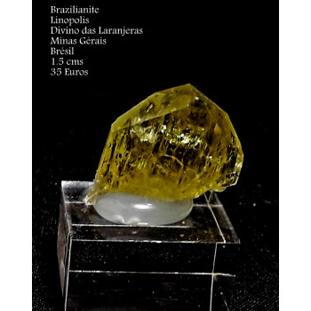 Cristal gemme de brazilianite, photo difficile à prendre dimensions hors socle1,5 cm0096-LCPF