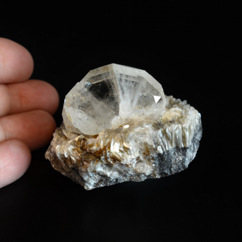 Calcite Vensat (63) FranceAtypique pour la localité, cette calcite se distingue par la surcroissance de deux cristaux, comme figurant des oreilles pointues. Ex-collection Minéraline