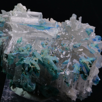 Superbe contraste entre les Fluorite vert d’eau et la Galène noire métallique. Beaucoup de cristaux de Fluorite éparpillés sur leur gangue de Galène, tout est parfaitement cristallisé. Spécimen de collection, très rare à trouver.9,70 x 7,40 x 6 cmRéférence : 1632