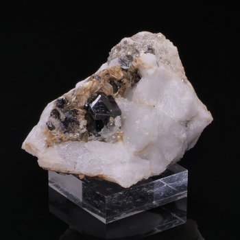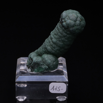 Superbe petit cabinet avec de gros cristaux de Dioptase vert intense et lustrés, associés à des cristaux de Cérusite cognac sur les côtés, le tout surmonté par des sphérules de Planchéite bleu clair qui offre une magnifique palette de couleur. Découverte du 27 Juin 1992 au Congo. La pièce est...
