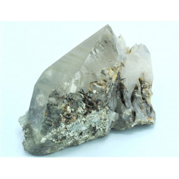 Jolie pointe de quartz fumé et chloriteux sur gangue.6,5 x 4 x 3 cm0112-CD