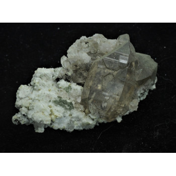 Petit quartz biterminé fumé et chloriteux sur gangue.6 x 6 x 3,5 cm0096-CD
