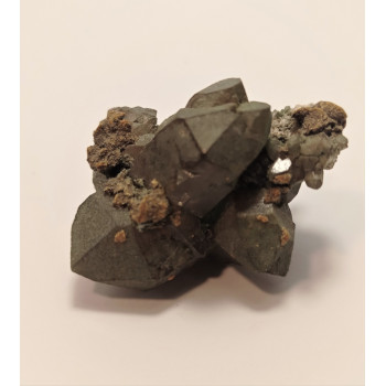 Sidérite en rosettes sur un bel ensemble de quartz fumé chloriteux. Récolte personnelle 2020.5 x 3,6 x 3,1 cm0005-CD