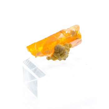 Pièce associant sous un enduit orangé de la fluorite jaune (cristal principal de 4 cm d'arête) et des pointes de quartz.Echantillon présentant des touches mais restant très appréciable pour le gisement.Il provient de la mine de L'Argentolle, Saint-Prix, Saône-et-Loire, Bourgogne-Franche-Comté,...
