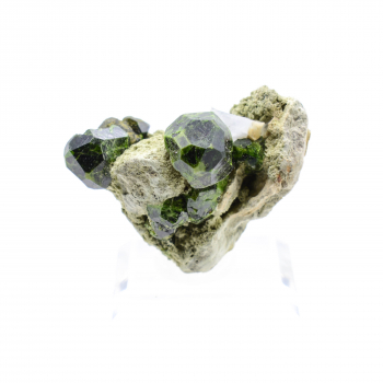 Octaèdres de Spinelle rose foncés sur gangue de Calcite blanche qui offrent un très beau contraste de couleur.15,80 x 8,50 x 5 cmRéférence : 1567