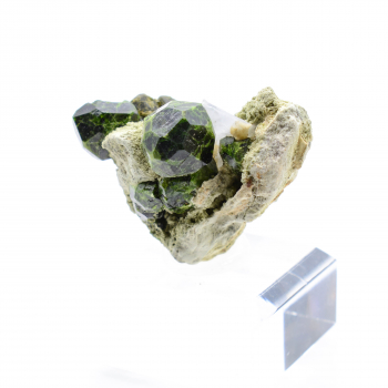 Octaèdres de Spinelle rose foncés sur gangue de Calcite blanche qui offrent un très beau contraste de couleur.10,20 x 8,80 x 6,50 cmRéférence : 1566