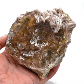 Coup de cœur pour ce petit cabinet présentant des cristaux de Fluorite incolores brillants associés à des cristaux de Quartz presque incolores. Belle brillance, spécimen lustré. La Fluorite est vraiment superbement cristallisée, pièce presque monochrome avec un sublime esthétisme provenant de la...
