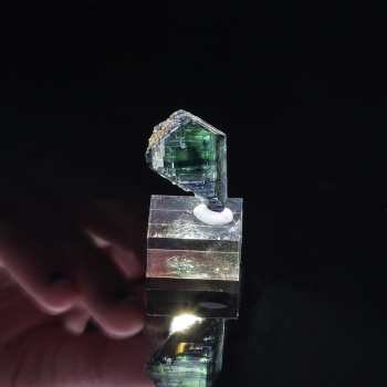 Cristaux d’Apophyllite verte avec des terminaisons peu communes. Celles-ci ressemblent aux Kunzite que l’on nomme mountain terminaisons, en effet ils ressemblent un peu à une montagne. Pas de dommage, très belle couleur vert d’eau, cristaux gemmes et lustrés.8,80 x 4,70 x 3 cmRéférence : 1439