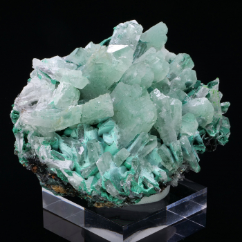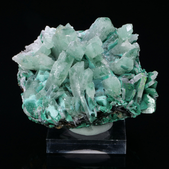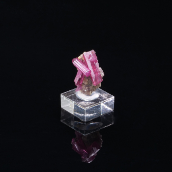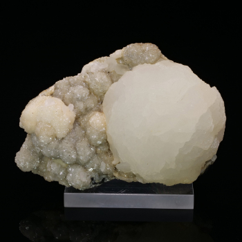 Spécimen de Skuttérudite présentant plusieurs cristaux argentés brillants, typique du Maroc. Les cristaux sont sur gangue de Skuttérudite massive. Association avec de la Calcite blanche qui offre un beau contraste de couleur. Belle qualité de cristallisation.2,70 x 2,50 x 2,40 cmRéférence : 1465