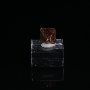 Spécimen esthétique présentant un cristal principal de Soufre tranchant de couleur jaune à marron, avec plusieurs autres cristaux plus petits. Caractéristique inhabituelle pour la localité, cette couleur est dû à la matrice qui a été exposé à des flux de bitume et pétrole, qui ont inclus la...