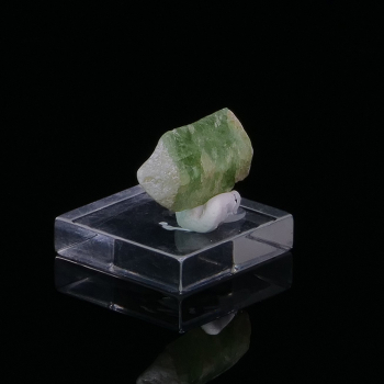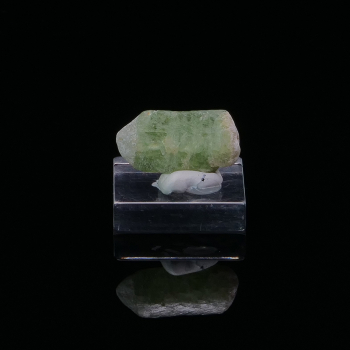 Cristal terminé d’Apophyllite vert clair bien formé, avec des cristaux allongés de Scolécite sur le pourtour.5,60 x 2,80 x 2,40 cmRéférence : 1970