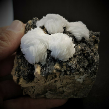 Petits pompons de baryte crêtée posée sur une fine couche de métal.6 x 6,5 x 2,5 cm0023-SPAA