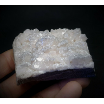 Petite pièce avec des cristaux de dolomite d'un coté et des cristaux de calcite de l'autre.8,5 x 6 x 2,5 cm0058-SPAA