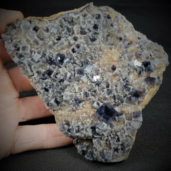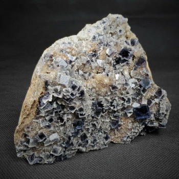 Magnifique et imposante fluorite bleue. Probablement l'une des plus belles pièces découverte à Durfort. Totalement hors du commun celle-ci présente des cubes polysynthétiques atteignent les 5 cm avec des inclusions d'hydrocarbure. Les cristaux sont vert d'eau à la lumière naturelle et bleu ciel à...
