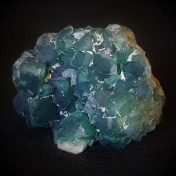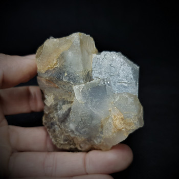 Cristaux de fluorite bleue avec inclusion d'oxydes de fer. Tous les points de contact sont cicatrisés.6,5 x 4 x 6,5 cmRéférence : 0081