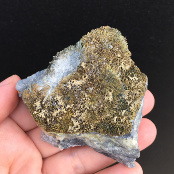 Pétales de Sidérite de couleur doré associés à de la Chalcopyrite irisée provenant de la mine de Kaiwu en Chine.3,80 x 3,70 x 2,80 cmRéférence : 2203