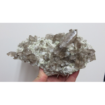 grand bi-terminé de quartz fumé, et ces quartz sur granit,belle brillance 19 x 10 x 4 cmRéférence : 0467