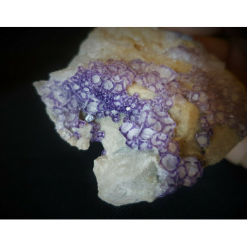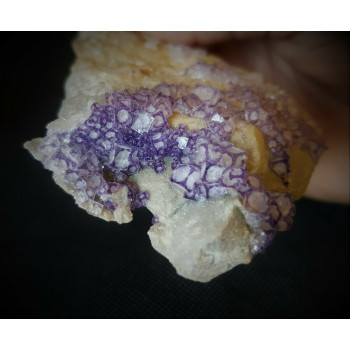 Fluorite aux cristaux translucides. Les fantômes violets forment un cercle dans certains cristaux créent un contraste cercle / cube.9,5 x 2 x 6,5 cm0066-SPAA