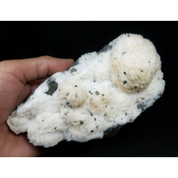 Baryte crêtée en pompons accompagnée de Tétraédrite et quelques touches d'hydrozincite.16 x 8 x 9 cm0001-SPAA