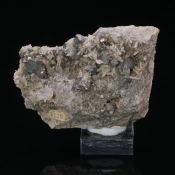 Longs cristaux de Quartz blanc opaque associés à de la Galène anthracite brillante provenant de Bulgarie.8,60 x 5,40 x 3,60 cmRéférence : 2408