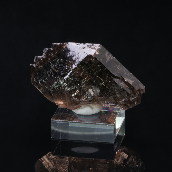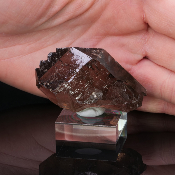 Cristal de Sphalérite jaune marron sur l’extrémité d’un cristal de Calcite biterminé blanc bien formé. Belle terminaison pour cette Calcite provenant de Chine.11,30 x 6 x 4,10 cmRéférence : 2411