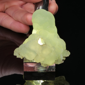 Spécimen de Pyromorphite typique d’Asprières en France avec une cristallisation botryoïdale de couleur jaune.5,50 x 4,60 x 2,10 cmRéférence : 1884