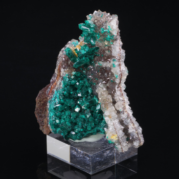 Dimension: 4.5 x 3.8cmProvenance: Mine d'Ojuela, Mapimi, Durango Prov., MéxiquePlus rare que l'Adamite, ce spécimen de Cupro adamite d'un vert très lumineux parfaitement restitué photogratiquement, offre une très belle fluorescence. Diamétre de cristalisation : 1cm Dimensions...