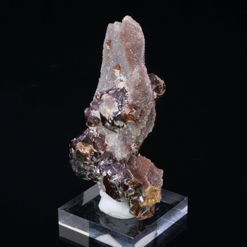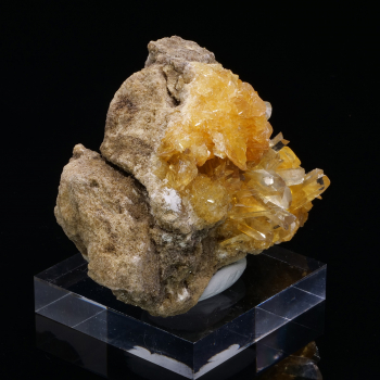 Fluorite jaune cubique aux cristaux partiellement recouverte de quartz micro-cristallin.Présence de pyromorphite et galène.Elle provient de la mine de L'Argentolle, Saint-Prix, Saône-et-Loire, Bourgogne-Franche-Comté, France.Cette pièce mesure 14,2 cm de long pour 7,6 cm de large et 7,1 cm de...