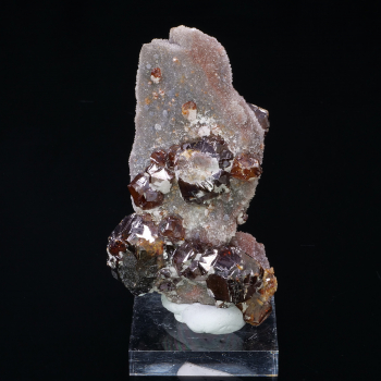Jolie pièce présentant du quartz recouvert d'un enduit rouge ferrique surmontant par une bande calcite blanche.Elle provient de la carrière de la Fare, Les Bondons, Florac, Lozère, Occitanie, France.Cette pièce mesure 9,7 cm de long pour 5,3 cm de large et 3 cm au plus épais.Son poids est de 141...
