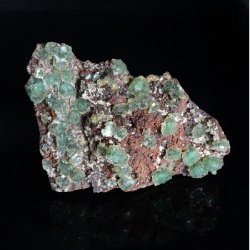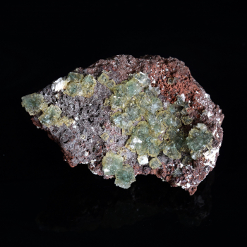 Vanadinite cristallisée sur toutes les faces avec une couleur très attrayante et des cristaux brillants.Elle provient de Mibladen, Aït Oufella Caïdat, Midelt, Drâa-Tafilalet, Maroc.Cette jolie pièce mesure 7,1 cm de long pour 5,7 cm de large et 5,4 cm d'épaisseur.Son poids est de 308 grammes....