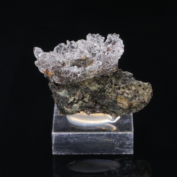 Sublime Opale Hyalite botroyoïdale formant comme une couronne sur sa gangue d’Andésite. La qualité des cristaux est splendide, ils sont gemmes, limpides, et très brillants. Très forte réaction aux UV pour cette variété d’Opale.5,75 x 4,50 x 3,30 cmRéférence : 3866
