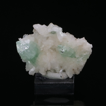 Cristaux d’Apophyllite vert gemme sur gangue de Stilbite presque incolore qui donne un beau contraste à la pièce.5,70 x 4,30 x 2,20 cmRéférence : 4009