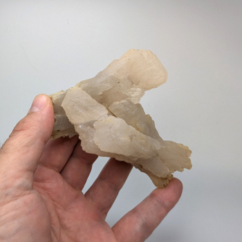 Superbe Calcite blanche de Tsumeb légèrement rosée, en forme de fleur. Belle cristallisation pour ce spécimen namibien.8,20 x 5,30 x 5,70 cmRéférence : 4015
