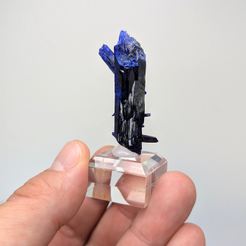 Grand cristal d'azurite avec une couleur vive et un beau lustre.Il provient de Kerrouchene, Khénifra, Région de Béni Mellal-Khénifra, Maroc.Spécimen mesurant 4,8 cm de haut pour 1,9 cm de large et 0,6 cm d'épaisseur.Son poids est de 9,2 grammes.(Mesures hors socle)Photos supplémentaires et...